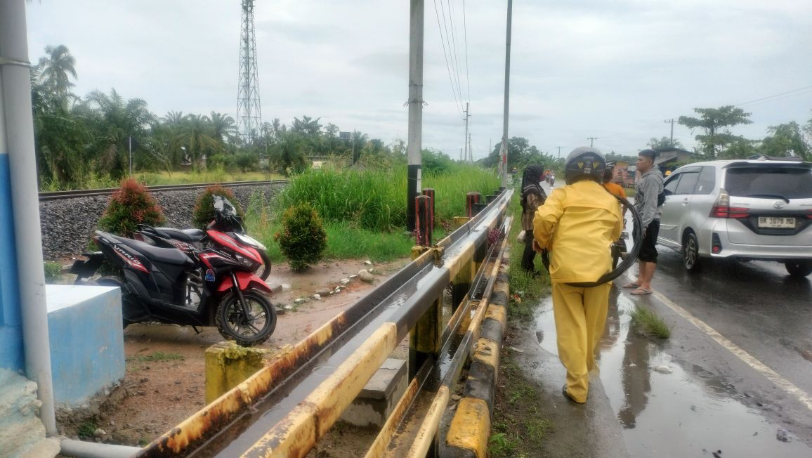 Saat ini sepeda motor vario diamankan warga di pos perlintasan kereta api Desa Lalang dan korban sudah diamankan warga ke klinik Harun yang berada di jalan acces road inalum Desa Lalang.